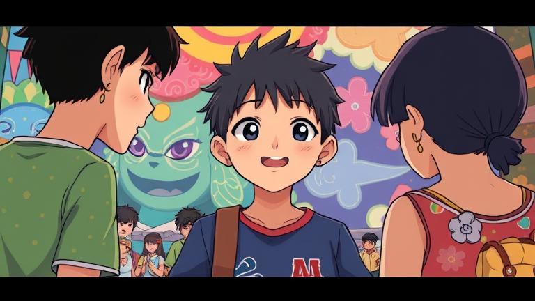 As the festival flickered with vibrant lights and laughter, Kazuki felt a silken thread of connection weaving him into the crowd. Just as he began to feel at home, a small whirlwind named Rhia dashed past, her giggles igniting warmth in his heart. She twirled, stopped, and with a cascade of curls, offered him a ribbon. ‘Here, tie a wish!’ she chirped, eyes sparkling like stars. Kazuki hesitated but then felt the importance of this whimsical request and thought of his long-buried dreams. ‘I wish to be part of this,’ he murmured, tying the ribbon to his wrist as if sealing a promise. Nearby, Haru encouraged villagers to express their stories, his voice a vibrating melody of creativity. ‘Let’s weave our tales into the tapestry of Resembool!’ he shouted, energizing those around him. Kazuki watched the magic unfold, villagers reminiscing and sharing secrets with vivid strokes of paint. Moved by the warmth of shared experiences, he timidly approached Haru’s booth and fluttered his brush across paper, decorating it with hopes swirling against harsh memories. However, a chilling wind soon swept through, slamming dark clouds into the atmosphere. Edward’s bold voice soon emerged, steadfast, declaring, ‘We face storms before we see rainbows! Together we are stronger!’ His inspiring resolve ignited energy, empowering Kazuki as he joined in fearlessly splashing colors on canvas. But as anxiety simmered under the joyous veil, Kazuki’s eyes smeared over to Winry, radiating calm seriousness while orchestrating a lantern booth. Shivering with unyielding uncertainty, Kazuki drifted toward her, confessing, ‘What if they never truly accept me?’ Winry’s eyes, filled with wisdom, pierced through his spiraling thoughts, ‘You have places only you can fill, Kazuki. Open your heart.’ Taking a deep breath, Kazuki turned with newfound conviction. ‘I’ll paint my truth!’ he proclaimed, racing to the mural and starting anew with strokes of fierce determination, manifesting a vibrant sunrise piercing clouds above. Minutes tip-toed into moments as the first drops of rain drizzled, blending the spirit of togetherness with the earthy scent of grassroots. Kazuki remained preoccupied with his art until he heard Rhia’s delighted voice rising from behind. ‘Kazuki! Put me in the sunrise. When I glow, I want everyone to shine!’ Her enthusiasm melted his constraints, flowing into his brush as he fixed her joyful form under rays of hope. Each drop of rain served as an amplifier to the villagers’ camaraderie, lighting brushes in support of each other’s trials in that shared canvas of resilience. Waving their palettes as one, they created a vivid reflection of healing, storytelling, and connections, transforming the mural into a rich, collective experience. In fleeting moments under delicately pouring rain and beating hearts, they birthed feelings of unity. The thunderstorm unleashed gusts, but the community embraced it as a fervor of love. Kazuki stood above the evolving work, watching emotions swirl together, rich and redone. The sun settled into shades of dusk, cloaking their memories in glitter. Kazuki felt a cloak of belonging drape over him like never before; it was a revival transcending acceptance. This was not another festival—it was lively communion—a collective pledge hinting at endless rippling belonging in their bright lives woven, side by side. The mural, glowing under rising stars, became a colorful testament to struggles turned triumph, as Kazuki and Rhia summoned villagers for a final joyful chant, their voices a persistent echo of love reverberating in every corner of Resembool.