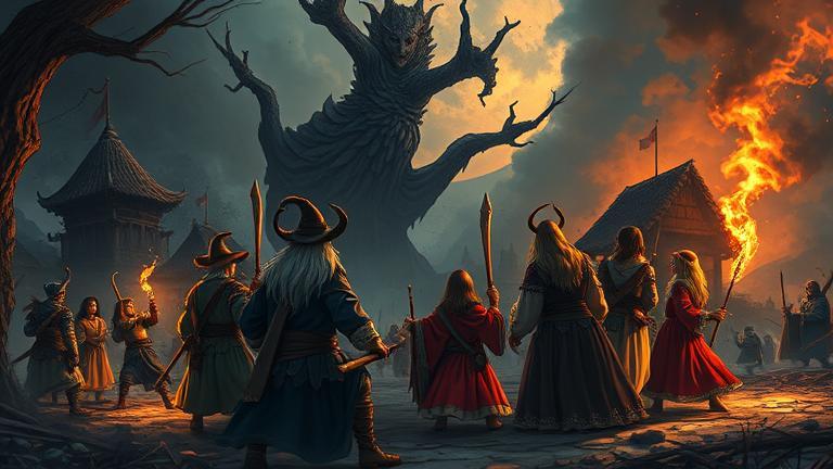 An explosion of energy erupted as their combined will clashed against the vile shadow. The air thickened with tension as Casca guided the villagers, each movement a fluid dance of defense and offense. In an intimate exchange, she turned to Elara, ‘Your speed will be our greatest asset—flank the beast’s left side!’