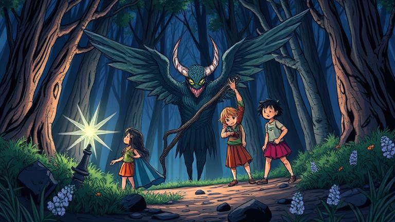 With hearts beating as one, the group stepped further into the Whispering Woods, their connected hands pulsing with newfound energy. The guardian spirit floated nearby, the shimmering light reflecting their emotions.