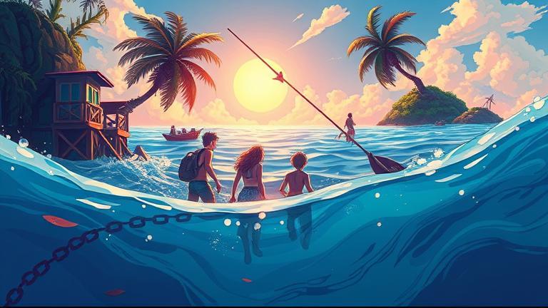 As summer warmed the coastal town of Alabaster Bay, Nora, Ethan, Mia, and Jake—now known affectionately as the Ocean Four—found themselves buzzing with excitement after their memorable night at the glowing cove. They vowed to make the most of their summer adventures and quickly started planning their next getaway. One sunny day, while lounging on the beach, Nora pulled out an old, tattered map she had discovered in her grandmother’s attic. ‘Look what I found!’ she exclaimed, showing it to her friends. The map had markings leading to an uncharted island just a few miles away. ‘Should we check it out?’ she asked playfully. Ethan’s eyes widened with curiosity. ‘An uncharted island? That’s where shipwrecks and treasure legends begin!’ Jake grinned. ‘This could be our greatest adventure yet!’ The group analyzed the map together, energized by the prospect of what lay ahead. ‘Let’s kayak again, but this time to the island!’ Mia suggested, enthusiasm bubbling in her voice. After preparing snacks and essential items, they set off early the next morning. Loaden with supplies, they paddled fiercely through the waves, guided by Nora’s map. ‘Keep your eyes peeled for any sea obstacles!’ Ethan warned, his eyes darting around the vast ocean. Jake nudged Ethan playfully. ‘Afraid of a few jellyfish?’ Ethan struggled not to steeple himself too much but burst into laughter. After about an hour of paddling, they finally spotted the silhouette of the island on the horizon. As they approached the shore, the sand seemed whiter and more inviting than any they had seen before. They unloaded their kayaks and stepped onto the soft sand, their shoes sinking slightly. ‘This place feels untouched!’ Mia exclaimed, drawing in a breath of fresh, salty air. They decided to follow a trail that led into a dense thicket of trees. The island was lush with vegetation, and the sound of rustling leaves added an element of mystery. As they ventured deeper, Jake pointed to strange carvings on the trees. ‘Do you think this is a sign of ancient inhabitants?’ he said, intrigued. ‘Perhaps treasure seekers!’ Ethan added, eyes gleaming with mischief. The map had led them to an old stone structure, partially overtaken by vines. ‘What is this place?’ Mia whispered, stepping closer. Nora blurted out, ‘Maybe it’s a shrine!’ Inside they found old trinkets, shells, and worn, romantic notes that spoke of love and hidden treasures. ‘We’ve found a treasure trove!’ Jake announced. They sorted through the findings, laughing and sharing ideas of what the items might have meant to those who once visited. They kept a few of the “treasures” as souvenirs, promising to respect the history behind the island. As they prepared to leave, Nora noticed a glimmer in the distance. ‘Wait! What’s that?’ They followed her lead until they stumbled upon a reflective pool, shimmering under the sun’s rays. ‘Whoa, this must be a secret lagoon!’ Ethan shouted, revealing a breathtaking sight. The water sparkled like diamonds, inviting them to take a dip. Without second thoughts, they jumped in, laughter echoing once more as they splashed each other. Just then, Mia gasped. ‘What if this is a magical lagoon? Like a fountain of youth or something!’ Jake laughed, ‘We’ll definitely level up in adventure points!’ They spent the entire afternoon splashing, joking, and feeling like kids once again. Later, drying off by the lagoon’s edge, they discussed deeper things—friendship, dreams, and the importance of embracing every moment together. ‘You guys are my family,’ Nora said earnestly. ‘I can’t imagine life without you.’ ‘Ocean Four forever!’ Mia cheered, offering a high-five to each friend. The sun began to set again, painting the sky with hues of orange and purple. The golden hour felt almost magical as they hugged and promised to uncover more secrets together. They kayaked back against a backdrop of the sun dipping behind the horizon, their hearts canvased with memories. ‘Let’s make this a summer tradition,’ Jake suggested as they neared the shore, feeling a warm surge of adventure still coursing through them. ‘Ocean Four: our hall of fame awaits!’ Ethan declared, focusing his gaze at the card where they sketched destination ideas. They all laughed, plotting their next move in the adventure of friendship, feeling the magic still radiating from their secret island.