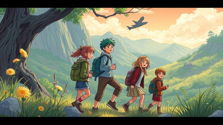 As the golden sun sank lower in the sky, casting a kaleidoscope of colors across Echoing Valley, Mia, Lina, Jasper, Eliana, and Sam found themselves gathered around the ancient stone circle once again. Spirits high from their last adventure, they were eager to weave new stories into the fabric of their vibrant surroundings. Jasper broke the silence, excitement bubbling in him. ‘What if we each bring something from home that inspires us? We can share our tales under the stars!’ ‘Great idea! Mine will be about my grandma’s garden,’ Eliana suggested, her eyes sparkling. ‘Flowers and stories! I love it,’ Mia grinned. ‘Together, we’ll bring our stories alive! Maybe we can act them out too?’ Lina chimed in. Sam, always the practical one, said, ‘Count me in, but we shouldn’t miss our chance to visit the Dell of Dreams. It is said the rocks around it can reveal secrets at dusk!’ The group unanimously agreed, anticipation surging as they made their way toward the Dell. As they passed wildflowers, Mia noticed a peculiar plant shimmering in the light. “Look at this one! It’s ethereal, like it holds magic,” she called out, leaning closer. Suddenly, a tiny fairy emerged, fluttering her iridescent wings. ‘I am Flora, guardian of the Dell!’ she announced, hovering near Mia’s shoulder. Breathless, the children gasped. ‘Can you show us the mysteries of the valley?’ Jasper asked, eyes wide with awe. ‘Only if your hearts are genuine,’ Flora responded, her voice soft like the wind. ‘You must promise to listen to the valley’s voice, for it holds the stories you seek.’ Each friend nodded earnestly. ‘We promise,’ they chorused. The fairy waved her hand, and the air shimmered around them. They found themselves standing at the entrance of the Dell, a lush grove encased in towering trees, their leaves whispering secrets. ‘This is breathtaking!’ Lina exclaimed, her heart swelling with joy. The approach of twilight enveloped the scene, filling it with an enchanting glow. Flora guided them further in, and they paused before a flowing stream where moonlight danced on the water’s surface. ‘This stream remembers past visitors,’ Flora explained, her eyes twinkling. A bubble of laughter circled through the air, eliciting ancient echoes of joy from nature itself. Inspired, the friends sat down, sketching notes on their surroundings while sharing their tales of inspiration. Moments turned to hours, laughter intertwined with whispers of secrets shared by the trees. Just then, a soft glow illuminated the rear of the Dell, perplexing the friends as they turned toward it. Flora smiled mysteriously, ‘There lies a piece of the valley’s hidden treasure.’ They scrambled towards the light, their hearts pounding with exhilaration. Bending down, they discovered a crystalline orb nestled amongst the roots—locked within was a swirling mist that seemed to reflect their memories. ‘This orb is the essence of every story ever told here,’ Flora explained, excitement dancing in her voice. ‘To unlock it, you must recite your tales.’ Together, they spoke their stories aloud, letting their dreams merge with the magic of the valley. As each story coalesced within the orb, it grew brighter and brighter until it burst forth in vibrant colors, showering the Dell with shimmering lights. The spirits of past adventurers filled the grove, celebrating the legacy of friendship and adventure intertwined in Echoing Valley. As the spirit of adventure heightened, Flora said, ‘You now have the power to craft new legends, make the valley a home for today’s tales just as it holds yesterday’s.’ The very air rejoiced as they rejoiced in their newfound connection. Tugging their hearts towards each other, they began chanting melodies of their adventures, each journey brought to light as they danced in unison. Even as darkness fell, they lit lanterns, casting glow in their enchanting circle of companionship. Once the night settled in, the fairy bid them farewell. ‘The valley’s stories are now yours to preserve. Share them with the world.’ The friends lingered in the molten moonlight, basking in laughter and neon echoes of the past. Already giddy with the thrill of an entirely new adventure, they returned to their camp, crafting the first pages of a new story—chronicling the friendship that bound them to each other and the ancient valley. ‘Tomorrow we’ll gather more tales and create everlasting echoes,’ Sam said confidently as they began piecing together their Narrative Map by the fire. ‘For every story we share makes the valley more vivid,’ Mia added. Looking out over the valleys, they believed in the infinite adventures that lay ahead, together. As their lanterns flickered, casting shadows of dreams across Echoing Valley, they knew they were a part of something bigger—a symphony of stories that would resound within the earth long after they were gone.