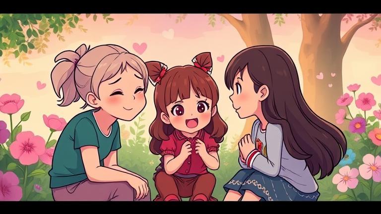 Tara reached to hold Alex’s hand, saying, ‘Then you are already part of our garden!’ Instantly, a luminescent joy filled the air, binding them in friendship.
