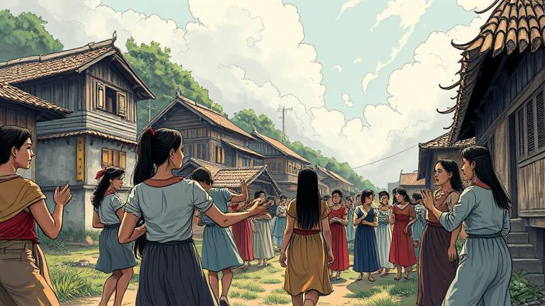 One villager after another took their turn sharing stories, tightly woven threads of grief and recovery echoed through the square. “I lost my husband last spring,” Emiko cried, a reflection of shared pain and resilience rising from her heart.