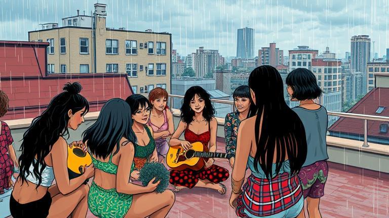 The bustling energy of the rooftop felt electric as Array, Dylan, Juno, and Charlie gathered to share their distinct talents. Array stood before a towering canvas, their heart alive with excitement. ‘Tonight is more than a performance; it’s a celebration of every voice,’ they declared, their brush poised with vibrant paint. Dylan, tuned into the ambiance, added a soft strum on his guitar. ‘It’s like we’re tapping into something magical together,’ he acknowledged, smile radiant. Juno, sketching swiftly, looked up, her eyes glistening with inspiration. ‘We each have a piece to contribute—the more stories we weave, the richer the tapestry!’ Charlie, who had been showcasing their dance moves, watched the skyline shift, echoing, ‘Just think, it all blossomed from those rainy moments—we grew closer because of them!’ A ripple of laughter danced through the crowd as Mira, the little girl with vibrant dreams, returned, her hands full of painted pebbles. ‘Can I add more?’ she eagerly questioned. Array leaned down again, genuine warmth emanating. ‘The more, the merrier! Let’s make this canvas illuminating together!’ With each pebble placed, their mural transformed with colors and shapes echoing individual dreams. ‘Look at all of us!’ Juno exclaimed, overwhelmed by the camaraderie surrounding them. ‘A gathering of colorful souls!’ Suddenly, the rooftop became a playground of playwrights and musical jesters, mingling tales one after another, connecting to rhythms that satisfied their restless spirits. A trio of poets recited their verses serenely while dancers twirled amidst the laughter of starry-eyed watchers. The community blossomed into a living artwork. The joyful atmosphere couldn’t be contained—it resonated across the rooftop. As plans for synchronized expressions vibrated through the air, another unexpected surprise awaited their delight—a downpour that was harmless yet icy. ‘Don’t run!’ Charlie shouted amidst the giggles, ‘Let’s dance! If we can create something wonderful under one of the worst storms ever, we are unstoppable!’ Array’s paint swirled and splashed along with Dylan’s infectious melodies. People began to sway and groove in a spontaneous rhythm, absorbing the rain as though it held magic in each droplet—striking connections and freeing spirits. Each person emerged liberated; the rain became their elixir, punctuating their laughter with joyous shouts, and every inconvenience turned to sheer celebration. Juno, inspired, began drawing the moments as animated sketches whispering enchantment illuminated the night. Array coated the canvas with splashes reflecting the night – a convergence of tears, exuberance, hopes, and newfound connections. ‘This is resilience,’ yelled Dylan, lifting his guitar high. ‘Together, we thrive! Grab me that rain!’ Laughter erupted around them; music filled the air in jubilant waves. Random strangers composed beautiful harmonies, intertwining their lives like threads of bravery that would hold them together forever. Array, now distributing brush strokes among the bystanders, felt energized as each hand gleefully added to the tapestry. ‘This dream’—Array beamed down at their masterpiece—’this isn’t just an art piece; it’s every soul stitching together their stories.’ Mira stood proudly, gazing at her joy-painted pebble nestled among blurs of colors on the canvas, affirming her worth with a gleeful giggle. Witnessing the joy bloom in everyone drew Array back into the heartbeat of artistic synergy with the childlike wonder that passed their creations along. As the rain eventually rescinded, they looked out across the energized crowd imbued with positive energies. The atmosphere felt like a gentle glow wrapping around them softly. Charlie raised his voice, ‘We’ve built something incredible together. Let’s make plans for the next creative hangout!’ Each atom of Array thrummed with endless possibilities ticking away. Time slipped swiftly past, and as colors exploded into the night, fireworks filled the skies, showering hues on every living spirit below. Somehow, Array knew this experience would stay etched within the vibrant heartbeat of their emerging community—an echoing call that art could transform despair into hope. ‘This is our legacy!’ Array embraced the others, warm joy flowing alongside their intertwined laughter; confidence wrapped their fading glances down memory lanes. Though a fleeting moment, the canvas bore their bright victories—for they were not merely artists. They were flashes of creation itself, embodying loveliness that joins within, forever bridging souls, stars, and unyielding dreams.