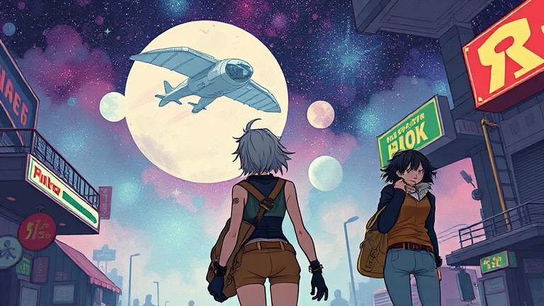 The trio exchanged warm glances, their spirits uplifted. ‘We move forward,’ Faye smiled radiantly, ‘because life is a sprinkle of madness in the realm of possibility.’ Fancy fabric caught the wind, and Spike, Jet, and Faye all dared to receive the new song of tomorrow amidst the swirling colors of the universe. With a shared laugh echoing behind them, they were ready to weave their new adventures into existence. Once aboard the Bebop, pasts healing into harmonies of hope, drifting over the infinite void, they leaned closer—their loyalties to each other like constellations, crafting the stars’ enchantment anew.
