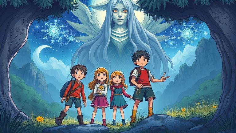 ‘Indeed, young adventurers. I am Elsa, the Keeper of Echoes,’ she announced, her voice like the wind rustling through the trees. The children exchanged excited glances. ‘What tales do you have for us?’ asked Sam, his curiosity piqued.