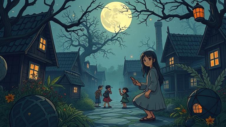 As the sun dipped lower into the horizon, the shadows seemed to beckon the group towards a piecemeal village square, long forgotten yet brimming with silent stories. ‘This place feels enchanting yet forlorn,’ Jotaro remarked, his brows furrowed thoughtfully.