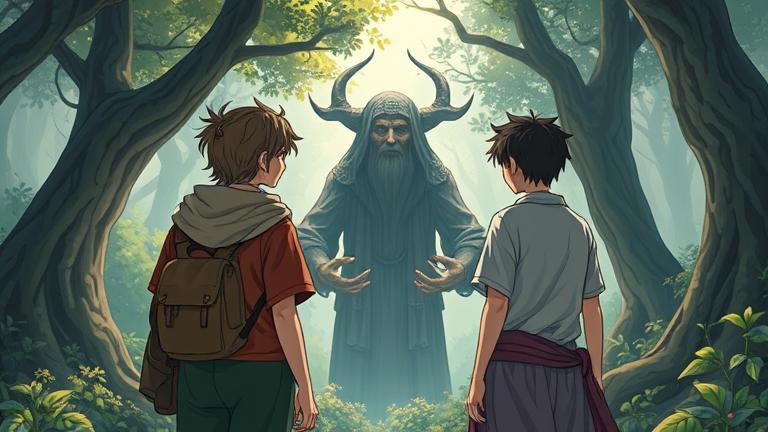 Suddenly, a soft rustle interrupted their conversation. Startled, the trio turned to see a figure emerging from the shadows. As the light pierced through, they recognized it to be Lorian, the wise elder of the village, known for his connection with the mystical beings of the grove.