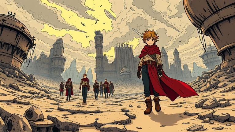 In the endless expanse of the desolate wasteland, where the sun blanketed the dry earth with its unyielding heat, Vash the Stampede ambled along the cracked soil. With his trademark red trench coat fluttering in the dusty breeze, his golden locks caught the light, revealing the gentle yet mischievous spirit lurking beneath the veneer of the notorious gunslinger. He had spent many years being known as the ‘Humanoid Typhoon’, a reputation that brought chaos in its wake, but now he was determined to find purpose beyond the legends that followed him.